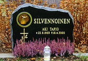 kynttiläholvi, pohjakivessä kukka-aukko jossa pronssinen lyhty |